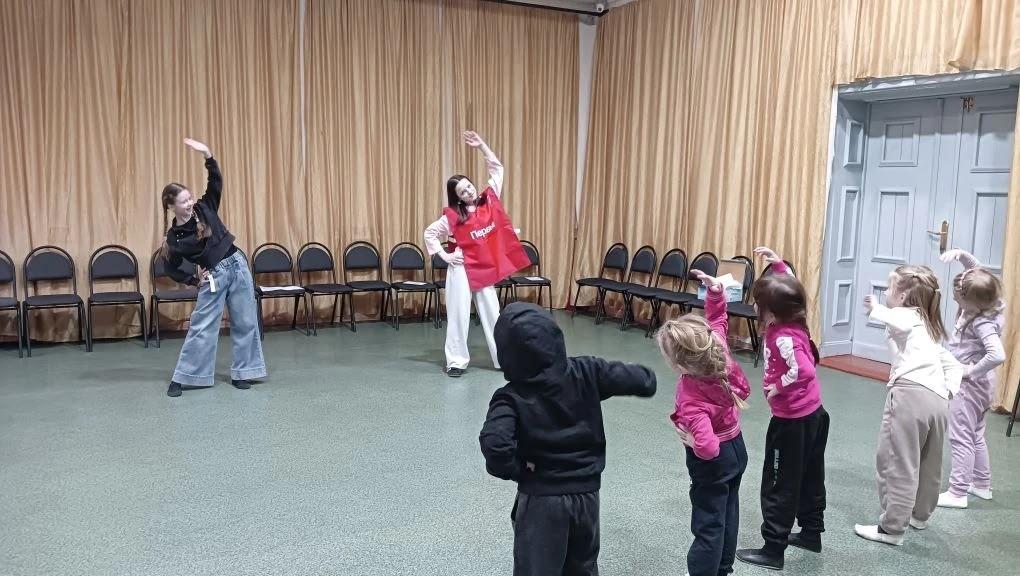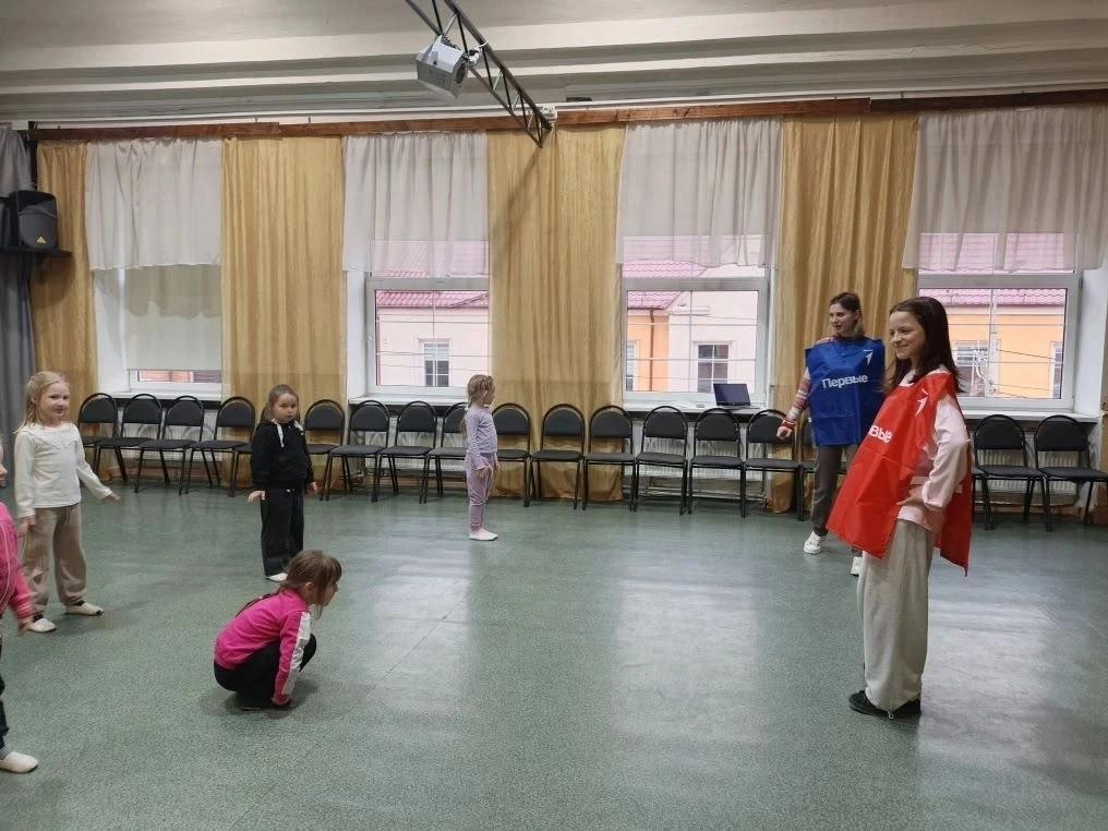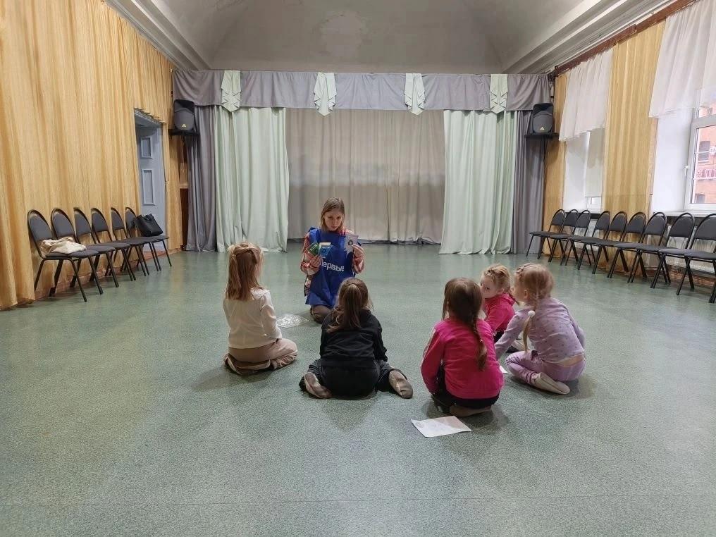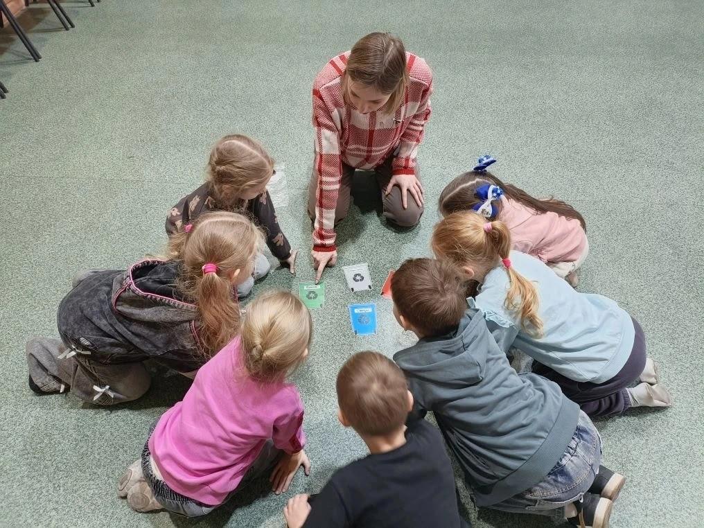 Ребята из детского сада отгадывали загадки, изучали сортировку мусора и делали зарядку под руководством активистов движения первых.