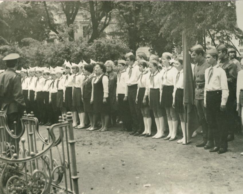 - Большая патриотическая работа велась на базе Ленинского зала, через кружок "Краевед". Здесь проводились беседы по ленинской тематике, встречи с ветеранами Великой Отечественной войны, ветеранами труда. Учащиеся кружка "Краевед" вели переписку с родственниками захороненных на территории города Гвардейска воинов Великой Отечественной войны, оформляли альбомы, стенды о героях- солдатах, проводили торжественные пионерские сборы "Никто не забыт, ничто не забыто".