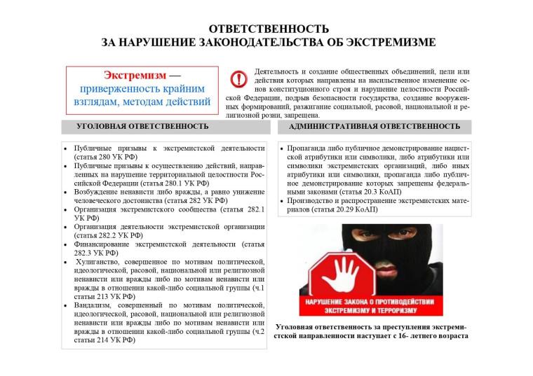 | ОТВЕТСТВЕННОСТЬ ЗА НАРУШЕНИЕ ЗАКОНОДАТЕЛЬСТВА ОБ ЭКСТРЕМИЗМЕ |